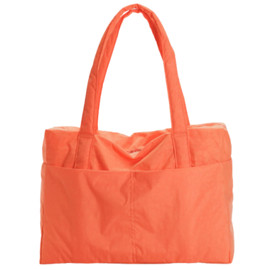 BAGGU's Cloud Carry-On is the bag to help you float away for a weekend… and maybe then some. It fits everything you need for a weekend away, happily rides on your roll-aboard, stuffs easily into an overhead bin. Take it on a trip, or let it take you on one. Includes a top zip closure, trolley sleeve, two large exterior pockets and a detachable interior zip pouch. Made from Recycled heavyweight nylon. Machine washable.