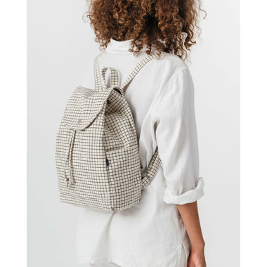 BAGGU Baggu Drawstring Backpack in Natural Grid