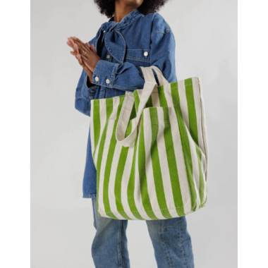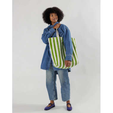 BAGGU Giant Pocket Tote Green Awning Stripe