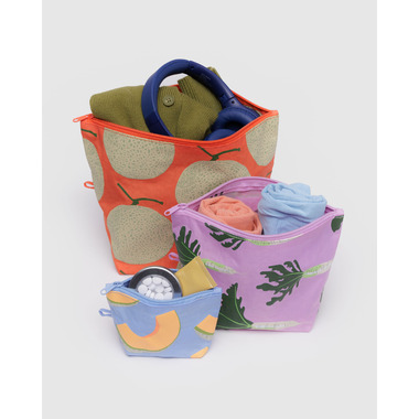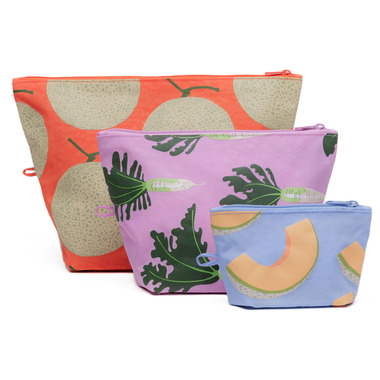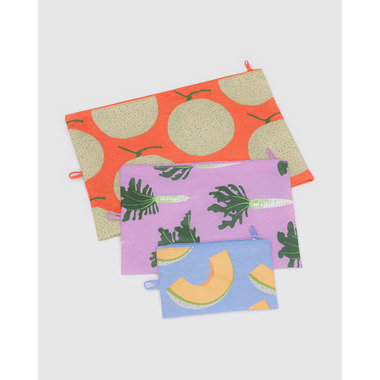 A set of three all-purpose zip pouches. Ideal for travel, organization, and storage.