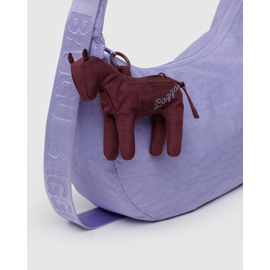 BAGGU's new Horse Bag Charm decorates your larger bag while keeping small items like credit cards or earbuds close at hand. Made from Recycled Heavyweight Nylon with a metal keyring clip and adjustable logo strap. Machine Washable.