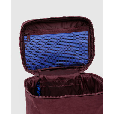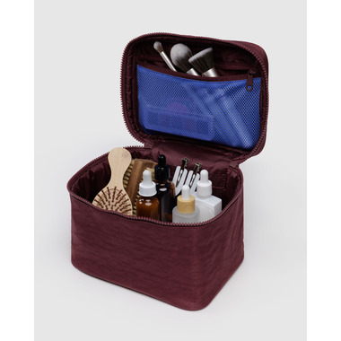 A roomy cosmetic case designed to make packing easier. Made of recycled