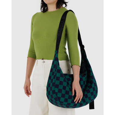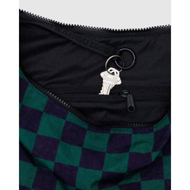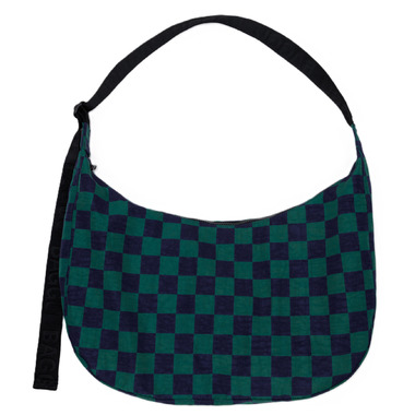 BAGGU Large Nylon Crescent Bag Navy Green Check