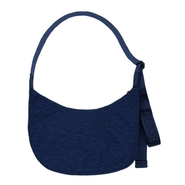 BAGGU's smaller crescent shape in recycled leather. Elevated, durable, and designed to fit the essentials. Features an interior zip pocket and thoughtful additions like a key leash and debossed keychain.