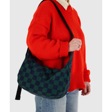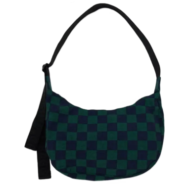 BAGGU Medium Nylon Crescent Bag Navy Green Check