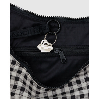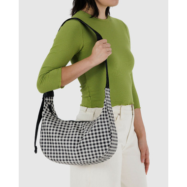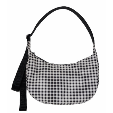 BAGGU Medium Nylon Crescent Bag Black & White Gingham