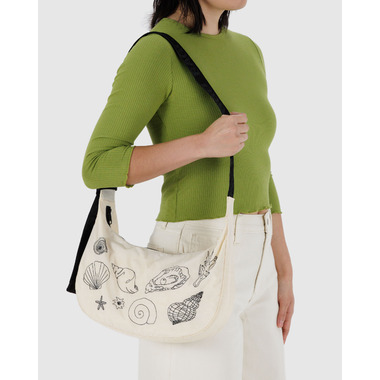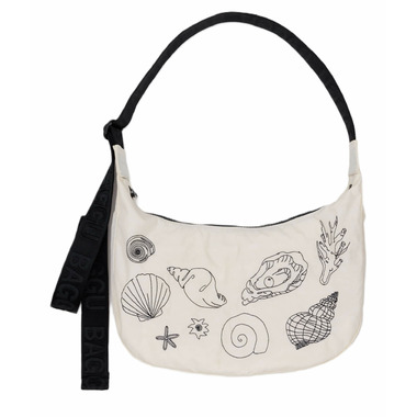 BAGGU Medium Nylon Crescent Bag Embroidered Shells