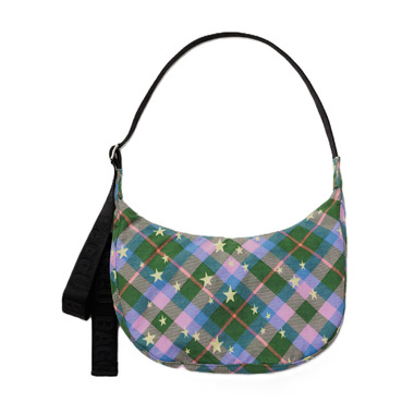 BAGGU Medium Nylon Crescent Bag Green Star Plaid