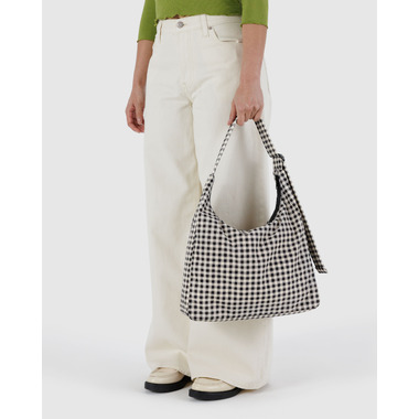 BAGGU Nylon Shoulder Bag Black & White Gingham