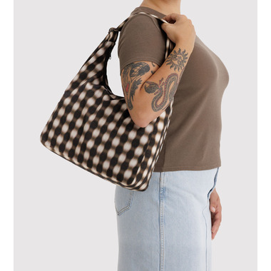 BAGGU Nylon Shoulder Bag Blurred Gingham Brown