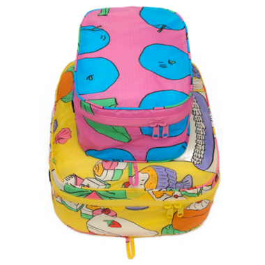 A pair of cube-shaped pouches perfect for organizing your luggage, your dresser, your closet - wherever! Keep those socks from floating off into the ether.