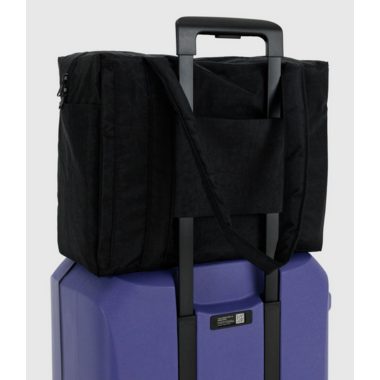 on top of your roller bag, and on your shoulder. Exterior pockets keep