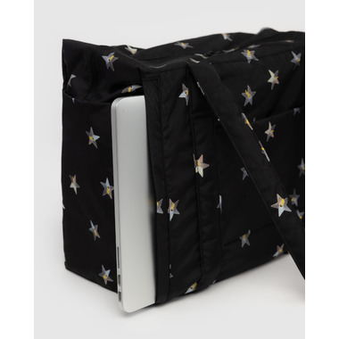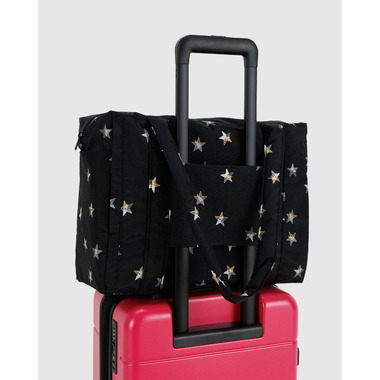 A travel bag optimized for flying: it fits under an airplane seat, on top of your roller bag, and on your shoulder. Exterior pockets keep your travel essentials within reach, including a tech pocket that fits up to a 16” laptop, and side pockets for your water bottle and boarding pass. The bag packs down into its interior detachable pouch for easy storage.