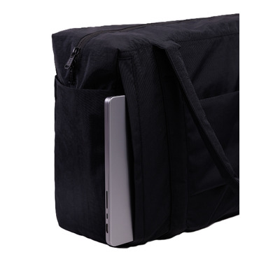 A travel bag optimized for flying: it fits under an airplane seat, on top of your roller bag, and on your shoulder. Exterior pockets keep your travel essentials within reach, including a tech pocket that fits up to a 16” laptop, and side pockets for your water bottle and boarding pass. The bag packs down into its interior detachable pouch for easy storage.