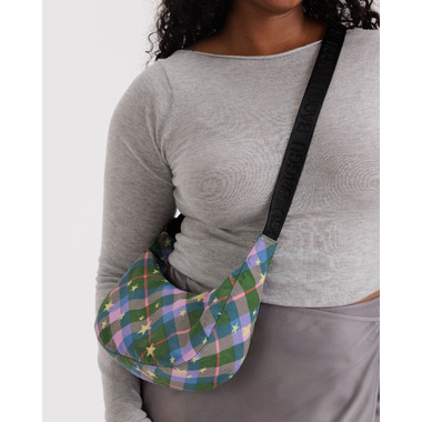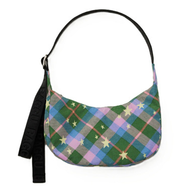 BAGGU Small Nylon Crescent Bag Green Star Plaid
