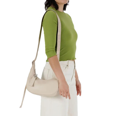 BAGGU Small Recycled Leather Crescent Bag Stone