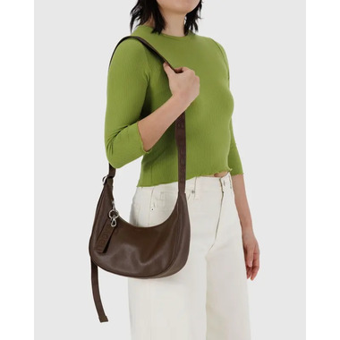 BAGGU Small Recycled Leather Crescent Bag Brown