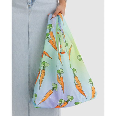• Carries 2-3 plastic grocery bags worth of stuff comfortably in hand or over your shoulder