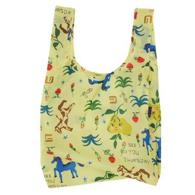 The best selling reusable bag is not just for the grocery store, it goes everywhere and hauls (practically) anything. Carry in your hand or over your shoulder. Holds 2-3 plastic grocery bags worth of stuff. Folds into a flat 5 in. x 5 in. pouch. Holds 50 lbs.