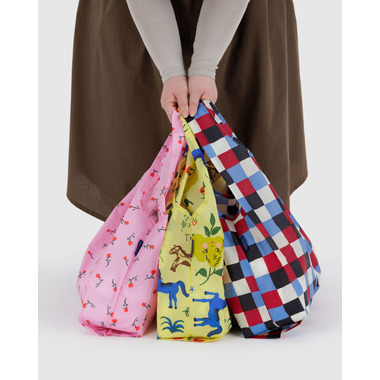 The best selling reusable bag is not just for the grocery store, it goes everywhere and hauls (practically) anything. Carry in your hand or over your shoulder. Holds 2-3 plastic grocery bags worth of stuff. Folds into a flat 5 in. x 5 in. pouch. Holds 50 lbs.