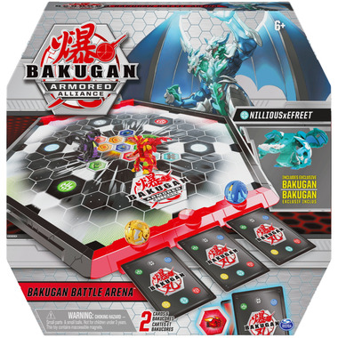 Take your game to the next level with the Bakugan Battle Arena! This arena is the ultimate way to battle like a true champion! With a hexagonal grid already on the board, laying out your BakuCores (two included) has never been faster. Face off against an opponent and roll your exclusive fused Nillious x Efreet Bakugan (included) for pop open Baku-Action!