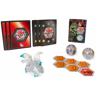 Includes: 1 Bakugan Ultra, 2 Bakugan, 6 BakuCores, 3 Ability Cards, 3 Character Cards, 1 Collectible Bakugan Gate-Trainer Card, 1 Instruction Sheet, 1 Bakugan Toy Battling Rules Sheet