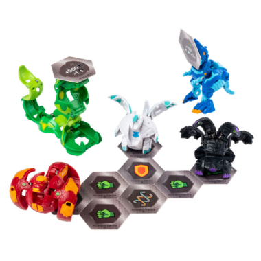 - Includes: 2 Bakugan Ultra, 3 Bakugan, 10 BakuCores, 5 Ability Cards, 5 Character Cards