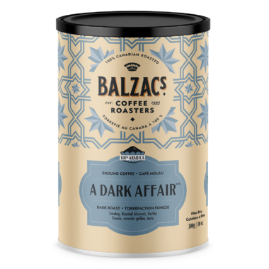 Balzac’s Coffee Roasters established in 1993. This A Dark Affair is a full bodied, rich blend to satisfy your darkest pleasures.