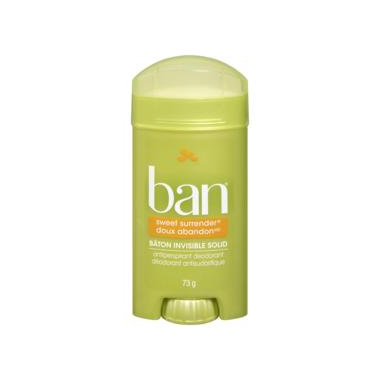 Ban Invisible Solid in Sweet Surrender gives you an uplifting blend of fresh fruits and light florals that glide on clear to provide 24 hour invisible protection.