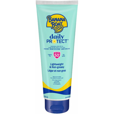Banana Boat Daily Protect sunscreen is formulated for daily use to provide safe and effective broad-spectrum UVA/UVB protection, without feeling heavy or greasy on the skin. This face sunscreen is an SPF multitasker! Nourish, hydrate, and rejuvenate your skin every day with a fragrance-free moisturizing sunscreen that won't clog pores, taking our famous UV protection and enriching it with vitamins. Lightweight and breathable, this sunscreen with niacinamide and vitamin C for face absorbs quickly, giving you 12-hour hydration along with UVA/UVB protection for every kind of outdoor fun. This formula is water resistant for up to 80 minutes, so youll stay protected in and out of the water (reapply as directed).