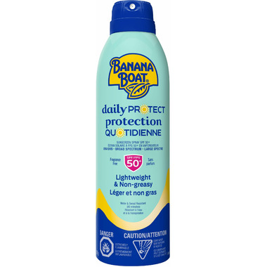 Banana Boat Daily Protect Sunscreen spray is a dermatologist-tested. It is a perfect sunscreen thats gentle on skin and provides broad spectrum UVA/UVB protection. Banana Boat sunscreen stays on in all sorts of conditions so you can enjoy more fun in the sun!