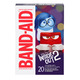 - 20 count box of decorative BAND-AID Brand Adhesive Bandages for kids featuring Disney Pixar's Inside Out 2 characters in assorted sizes for minor cuts & scrapes