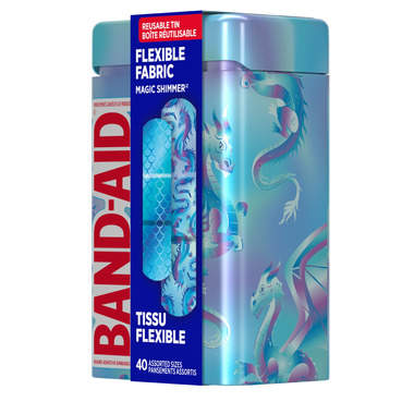 These cute elastic bandages are made with flexible material to stretch and move with you and feature colorful, decorative designs. Perfect addition to a first aid kit for adults and kids or at-home wound care supplies, this tin contains 40 sterile individually wrapped adhesive bandages in assorted sizes to help care for all of your minor cuts, scrapes and burns.