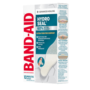 Help heal minor everyday cuts and scrapes better with BAND-AID Brand Hydro Seal Advanced Healing Ultra-Thin Hydrocolloid Bandages. Clinically shown to deliver 60 percent better healing** and help reduce scarring*, these 100 percent waterproof bandages stay in place for up to 5 days, protecting wounds even through handwashing and showering.