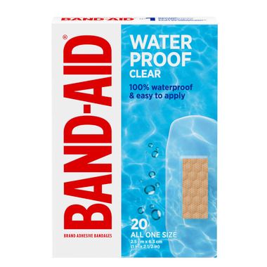 Help care for minor wounds, cuts & scrapes with BAND-AID Brand Waterproof Clear Adhesive Bandages. Their most advanced waterproof bandages stay on through handwashing, showers & swimming. These comfortable bandages have a four-sided adhesive that make it easy to apply and stays on to help block out water, dirt, & germs that may cause infection. These waterproof bandages feature a unique QUILT-AIDΙ Comfort Pad that are designed to cushion & help protect painful wounds, helping you heal & prevent reinjury. Their non-stick pad ensures that they stick to the skin & not the wound. To use, apply the sterile adhesive bandage to clean, dry skin for minor wound care & change daily or as needed. For proper care, treat the wound with an antibiotic ointment/cream such as Polysporin prior to application. Care for your minor wound with BAND-AID Brand Adhesive Bandages, the #1 doctor recommended bandage brand (based on IQVIA ProVoice Survey 2023). This pack of clear bandages is the ideal addition to wound care supplies & first aid kits.