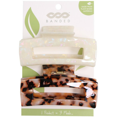 Eco-friendly cellulose acetate claw clips in 2 marbled colors: Mica white and pale tortoise (1 each color).