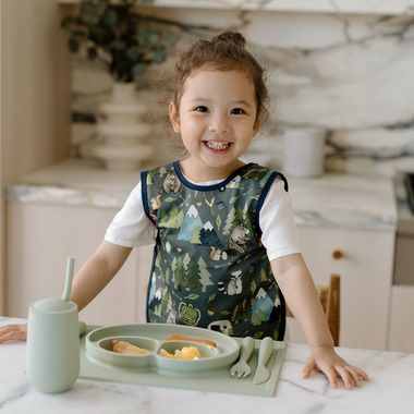 This innovative bib-apron hybrid, known for its full-coverage design, combines the practicality of an apron with the convenience of a bib, ensuring your little one stays clean and comfortable during meals, art projects, and sensory play.