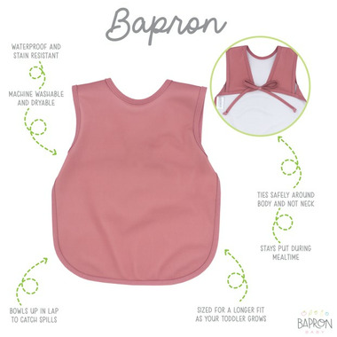 The ultimate choice for baby-led weaning enthusiasts: the best-selling Bapron! This innovative bib-apron hybrid, known for its full-coverage design, combines the practicality of an apron with the convenience of a bib, ensuring your little one stays clean and comfortable during meals, art projects, and sensory play. BapronBaby Baprons feature secure horizontal ties that offer a snug, comfortable fit, preventing slips and spills - even for babies that usually hate bibs. Crafted from durable yet soft waterproof fabric, they are quick-drying, stain-resistant, and machine washable. Plus, they are made from 100% certified baby-safe materials, free from harmful chemicals, ensuring they are gentle on even the most sensitive skin. What sets BapronBaby Baprons apart is their commitment to sustainability and ethical production. Each Bapron is made from high-quality, eco-friendly fabric and crafted under fair labour standards, making them a responsible choice for conscientious parents. They chose Bapron for a blend of comfort, safety, and eco-consciousness that supports your child's development and well-being.