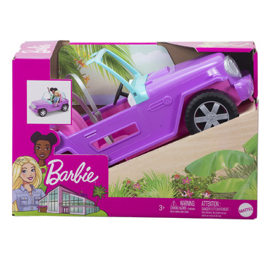 Young imaginations can take their stories off the beaten path with this all-terrain Barbie vehicle! With a cool, open-air look, this Barbie vehicle lets imaginations take Barbie doll and a friend (dolls sold separately) on a casual cruise, an off-road adventure or anywhere their imaginations take them! Features a purple body, pink interior, silvery accents (like the grille and wheels) and tires that roll -- push to start the fun! Barbie logo details and a personalized license plate add signature style. Adventurers 3 to 7 years old will love hitting the open road and veering off it to make their own path because with Barbie, you can be anything!