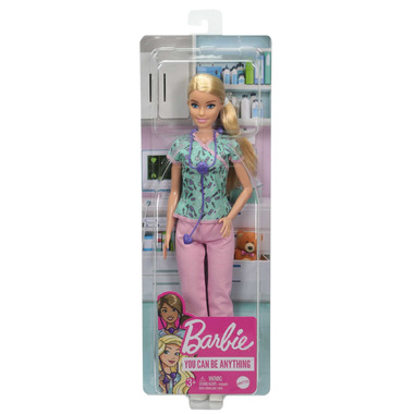Explore a world of caretaking career fun with the Barbie. nurse doll! When a girl plays with Barbie, she imagines everything she can become, and if you love taking care of and helping others, you can be a nurse! The Barbie nurse doll (12-in/30.40-cm) wears cute scrubs featuring a medical-tool print top and pink pants, white shoes and a sleek ponytail. She also comes with a stethoscope that hangs around her neck. Kids will love the endless possibilities for creative expression and storytelling fun. Doll cannot stand alone. Colors and decorations may vary. Makes a great gift for ages 3 years old and up.