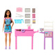 With Barbie doll, kids can explore all kinds of sweet career roles, like a donut shop owner! This playset features lots of baking fun with a working conveyor belt, color-change transformation, donut display stand, register and more. To help Barbie baker doll create her delicious treats, kids place the donuts at the end of the conveyor belt and use the working mechanism to flip them, then send them down the line to the 'icing' station -- where a water tank and sponge work to 'frost' the donuts with a surprise color change! Additional storytelling pieces include a display stand with register, trays and a pink takeout box. Imaginations can play out a world full of storytelling possibilities and baking fun with this sweet playset! Doll cannot stand alone. Colors and decorations may vary.