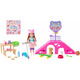 Chelsea doll and her two puppies are ready to roll into playtime in this skatepark playset! With a scooter for Chelseaٙ doll and a skateboard for the two dogs, kids can play out all kinds of stunts and stories. The park has a ramp, picnic area, basketball hoop and lots of themed accessories for role-play fun, plus a sticker sheet to decorate the set. Doll cannot stand alone. Colors and decorations may vary.