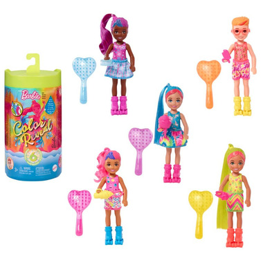 - With 6 surprises in 1 package, the Barbie Chelsea Colour Reveal dolls deliver all kinds of delight -- kids will love revealing the Neon Tie-Dye Series with Original Colour Reveal Innovation!