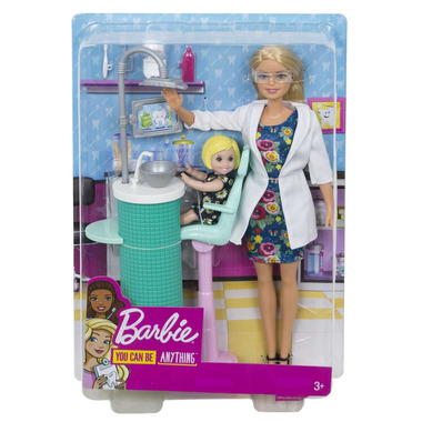 Pick one profession or try them all because when a girl plays with Barbie, she imagines everything she can become (each sold separately, subject to availability). Includes Barbie doll, dental chair, sink and themed accessories. Barbie doll cannot stand alone. Colors and decorations may vary.
