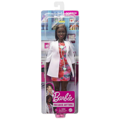 Explore a world of care-taking fun with the Barbie doctor doll! When girls play with Barbie, they imagine everything they can become, and for those that love the medical field and taking care of others, they can be a doctor! The Barbie doctor doll wears a colourful print dress with a white doctor's coat and comes with a stethoscope for patient checkups! Kids will love the endless possibilities for creative expression and storytelling fun! Doll cannot stand alone. Colours and decorations may vary. Makes a great gift for ages 3 years old and up.