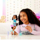 - Barbie "Brooklyn" doll features long black hair, styled in multiple ponytails, with shiny highlights throughout to showcase the character's creative personality!