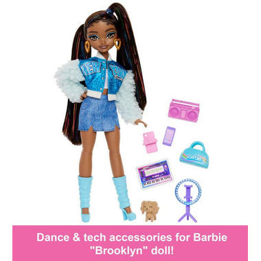 - Barbie "Brooklyn" dreams of being a world-famous choreographer! Help her create dance videos with accessories including her boombox, tablet, ring light, duffel bag, phone with a case and sweet pup, Pumpkin!