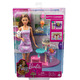 Help Barbie doll care for 1 cat and 4 adorable kittens in their adorable Kitty CondoΙ playset!  The Kitty Condo playset features 4 levels and a peekaboo hideout, plus a spinning rope toy, a teaser toy and a basket that moves up and down!  The basket detaches to double as a pet bed, and the teaser toy can clip into Barbie doll's hand for twice the fun! Expand storytelling even more with nurturing accessories, like a bottle, brush and ball of yarn. Barbie doll is ready for a day of play in a stylish dress with a sweet pawprint pattern and casual blue sneakers.