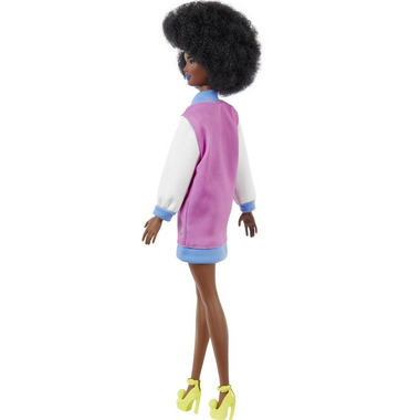 Barbie and Ken Fashionistas celebrate diversity with fashion dolls that encourage real-world storytelling and open-ended dreams! With a wide variety of skin tones, eye colours, hair colours and textures, body types and fashions, the dolls are designed to reflect the world kids see today -- and their attention-grabbing outfits help them stand out with personalities that pop! Use the reusable vinyl package to fill, carry and customize -- store Barbie- fashions and accessories, carry a doll anywhere, even decorate it and use for self-expression! Kids can collect Barbie dolls and accessories for infinite ways to play out stories, express their own style and discover that fashion is fun for everyone! Includes Barbie Fashionistas doll wearing fashions and accessories. Each sold separately, subject to availability. Barbie- dolls cannot stand alone. Flat shoes fit dolls with articulated ankles or flat feet. Colours and decorations may vary.