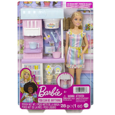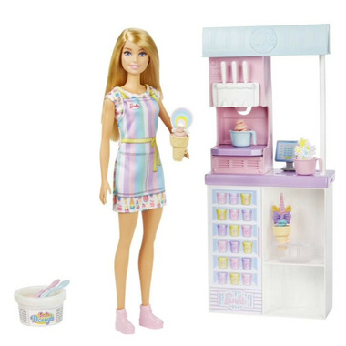 - Kids can run an ice cream shop with the Barbie Ice Cream Shop Playset!
